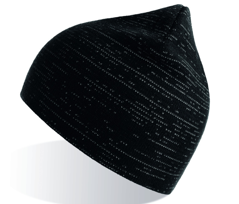 Mütze aus recyceltem Polyester - Reflektierende Fasern. Perfekt für den Sport, wenn es dunkel wird und kalt ist. Hergestellt aus dem Recycling von Plastikflaschen.