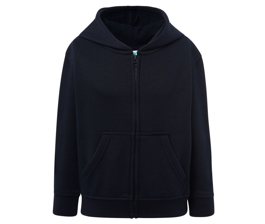 Kapuzensweatshirt mit Reißverschluss - Durchgehender Reißverschluss. Kängurutasche. 1x1 Rippenbündchen aus Lycra an Ärmeln und Bund. Umstellung des Lagerbestands: Polyester/Baumwolle zu Baumwolle/recyceltem Polyester. Innen angeraut.