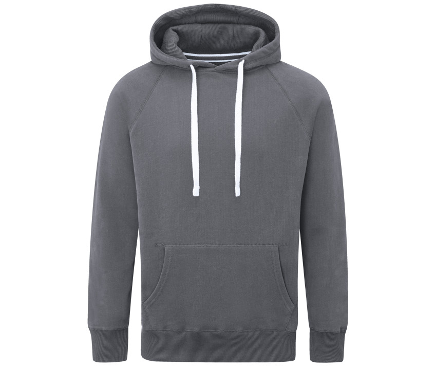 Innen angeraut. Soft-Touch. Breite Rippenbündchen an Ärmeln und Bund. Kängurutasche. Raglanärmel. Innenseite der Kapuze aus Waffelstoff. Nackenband. Breites flaches Zugband. Ablösbares Etikett.