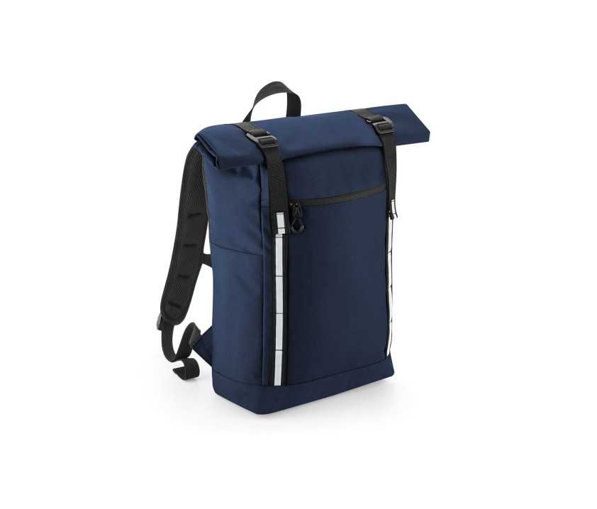 Rucksack mit Rollverschluss - Wasserdichter Rollverschluss. Schnallen aus Metall, mit Handschuhen verwendbar. Reflexstreifen.