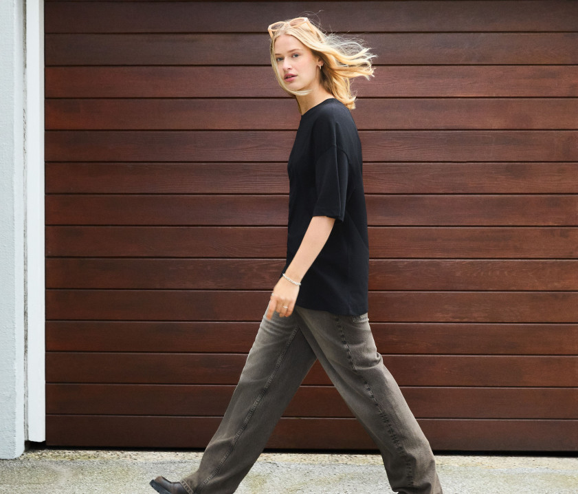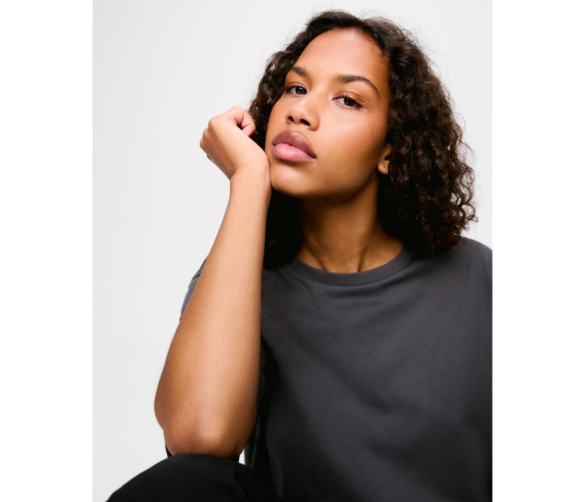 Lockere Passform. Eingesetzte Ärmel. Überschnittene Schultern.