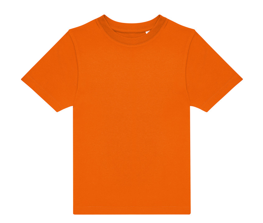 Kinder-T-Shirt 150 - Für Jungen und Mädchen (geschlechtsneutral) von Kleinkind bis Teenager entwickelt. Schlauchförmige Konstruktion (Größe 1-2 Jahre mit Seitennähten). Dünnes Rippstrickbündchen am Kragen. Nackenband auf der Rückseite