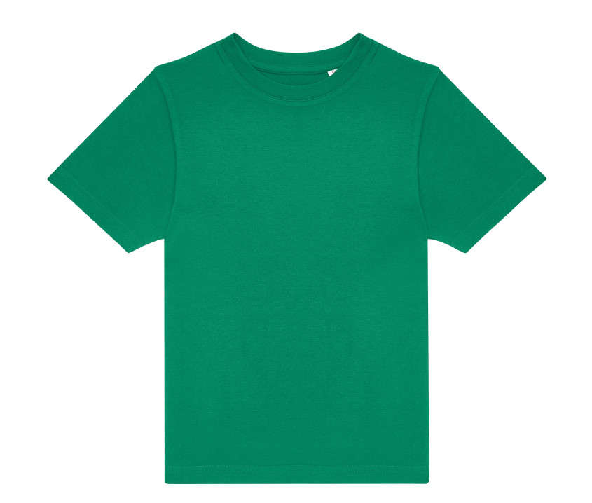 Kinder-T-Shirt 190 - Für Jungen und Mädchen (geschlechtsneutral) von Kleinkind bis Teenager entwickelt. Schlauchförmige Konstruktion. Dünnes Rippstrickbündchen am Kragen. Nackenband auf der Rückseite.