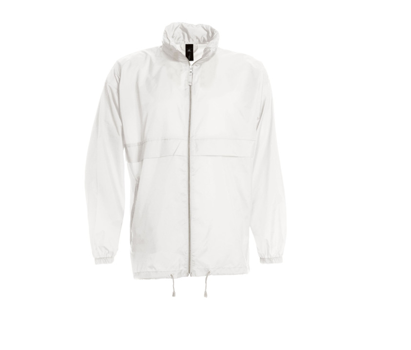 Winddichte Jacke für Herren - Wasserabweisend. Verstellbare 3-teilige Kapuze mit Kordelzug. Lässt sich in einer Tasche mit Reißverschluss verstauen. Eingestelltes Produkt. Ersetzt durch BC630.