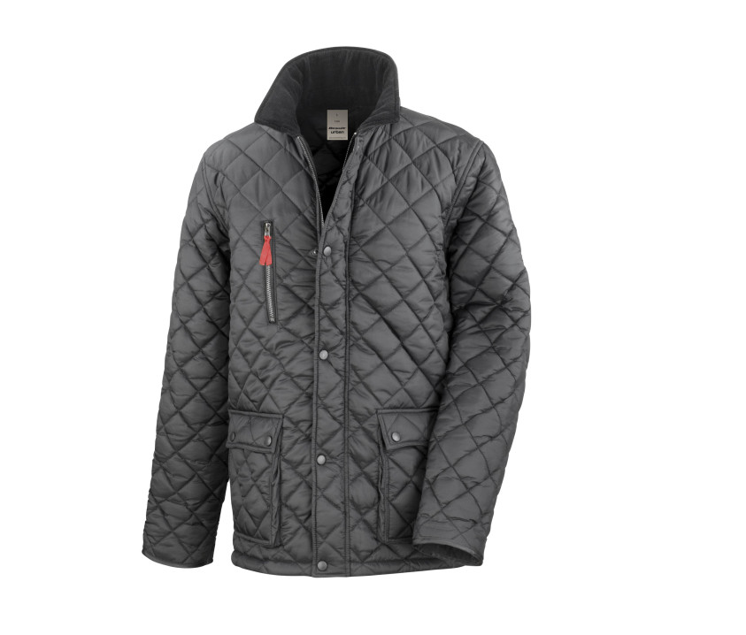 Kragen aus geripptem Samt. Durchgehender Reißverschluss mit Klappe mit Druckknöpfen. Aufgesetzte Taschen, Verschluss per Druckknöpfen, mit seitlichen Händewärm-Taschen. Brusttasche mit Reißverschluss. Rautenförmiger Damast 2x2. Fleece-Futter. Schlitze hinten mit Druckknöpfen.