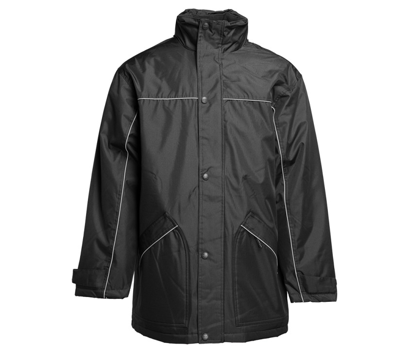 Parka mit reflektierender Paspel - Winddicht mit wasserdichter Beschichtung. 2 Außentaschen mit Reißverschluss. Kapuze aus Oxford im Kragen.