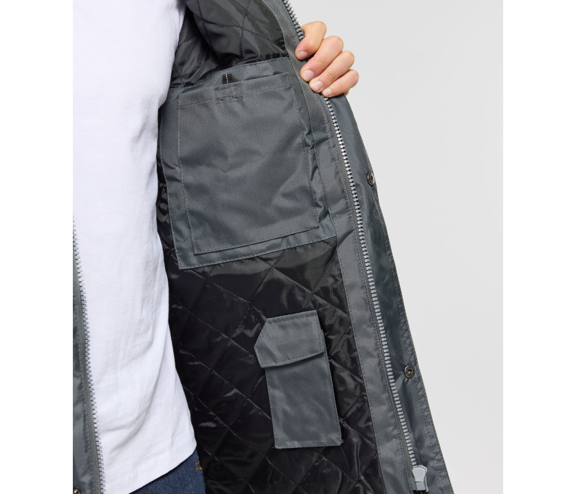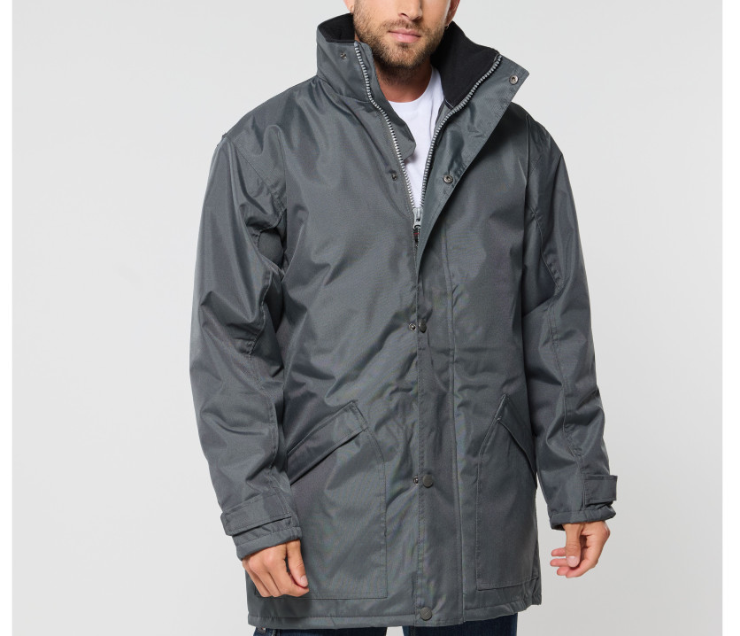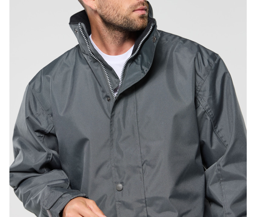 Innen: 100 % Fleece, wattiert.ROYAL BLUE/POLAIRE NAVY : Außen: 100 % Polyester Oxford, wasserdicht. Innen: 100 % Fleece, wattiert.TITANIUM/POLAIRE BLACK : Außen: 100 % Polyester Oxford, wasserdicht.