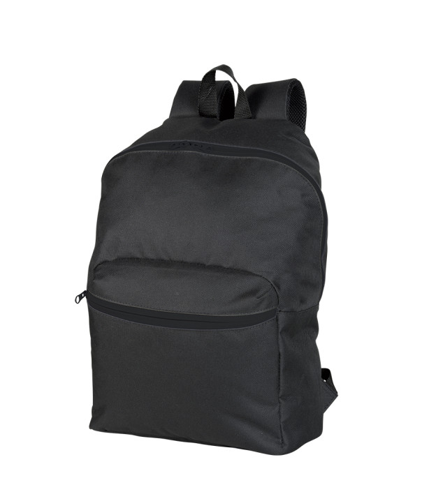 Leichter Rucksack. Kontrastierter, umgekehrter Reißverschluss. Gepolsterte und verstellbare Träger. Funktionelle mittige Tasche und vordere Tasche. Bedruckbare Fläche: 17x9 cm.