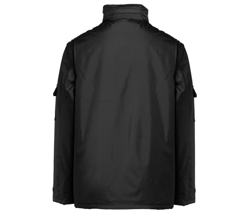 Gefütterte Jacke mit abnehmbaren Ärmeln - 4 Außentaschen und 3 Innentaschen. Kapuze im Kragen mit Reißverschluss. Ärmelbündchen mit Klettverschluss verstellbar.