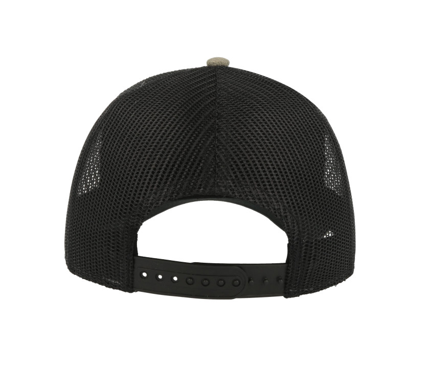 5 Panels. Vorderes Paneel verstärkt. Vorgeformtes Schild. PVC-Verschluss. Band aus 100 % Baumwolle Chino. 8 Nähte am Schild. Schirm mit Kunststoffkernstruktur gefertigt.