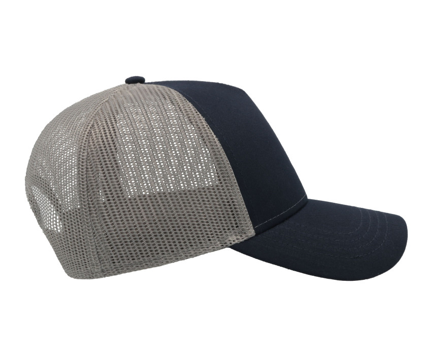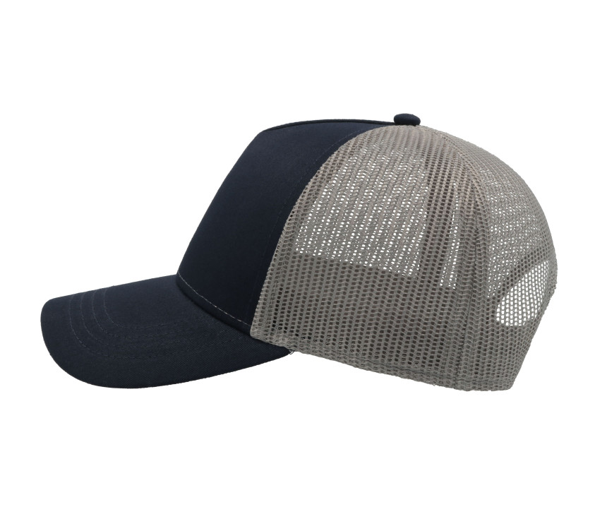 5-Panel-Cap im Trucker-Stil aus Baumwolle - 5 Panels. Vorderes Panel und Schild aus Baumwolle. Netzgewebe hinten.