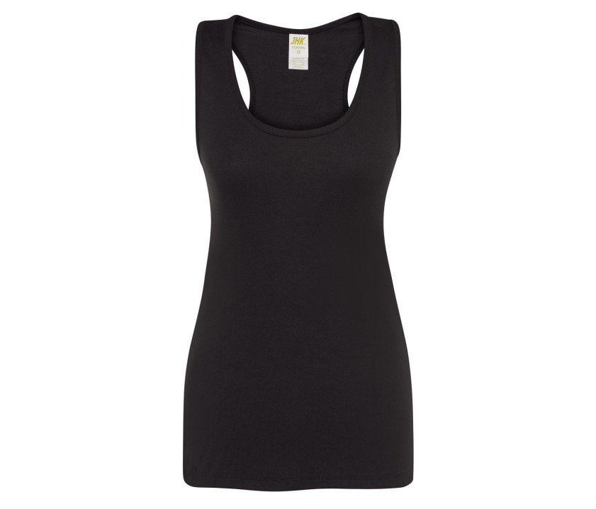 Damen-Sport-Tanktop. Ringerrücken. Ablösbares Etikett. Anliegende Passform.