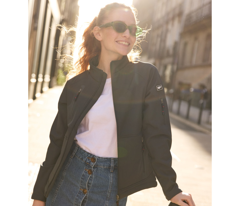 3-lagige Softshell-Jacke für Damen - 3-schichtiger Stoff mit atmungsaktiver Membran befestigt und wasserdicht. Anliegende Passform. Innenmaterial aus Microfleece.