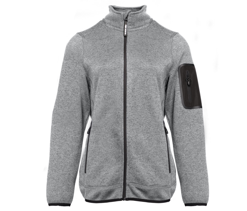 Gestrickte Fleece-Jacke für Damen 300 g/m². Reißverschlusstasche am Arm. 2 Reißverschlusstaschen.