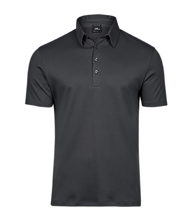 Pima Baumwoll-Polo Herren - Anliegende Passform. Knopfleiste mit 4 Perlen-Knöpfen (Imitat), anthrazit. Mit Enzymen gewaschen.