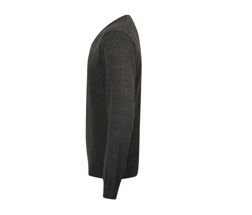 Pullover mit V-Ausschnitt für Herren - Gauge 12. Saum und Ärmel aus Rippenbündchen.