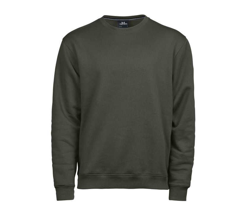 Sweatshirt mit Rundhalsausschnitt 70/30 - Doppelt gefärbt. Doppelte Steppnaht. Alle Rippenbündchen aus Lycra®. Innen angeraut.